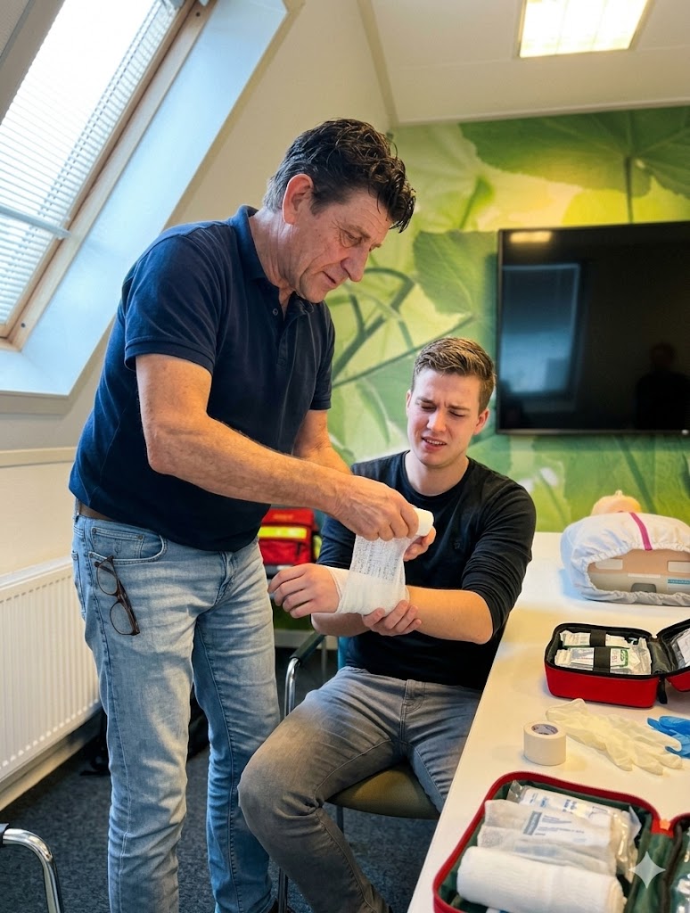 Hoewel ik het geleerde nog niet in de praktijk heb hoeven toepassen, heb ik er alle vertrouwen in dat ik in een noodsituatie goed kan handelen. Dankzij zijn geduldige en professionele aanpak voel je je na afloop zelfverzekerd en goed voorbereid. Absoluut een aanrader!